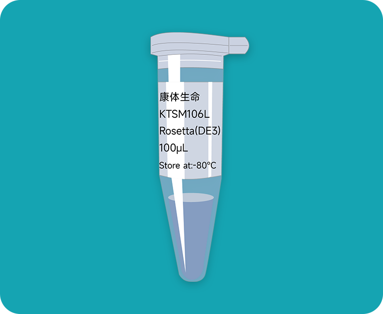 Rosetta(DE3)菌株具有氯霉素抗性,补充大肠杆菌缺乏的6 种稀有密码子(AUA,AGG,AGA,CUA,CCC,GGA)对应的tRNA,提高外源基因,尤其是真核基因在原核系统中的表达水平,该菌株染色体整合了λ噬菌体DE3区 (DE3区含有T7噬菌体RNA聚合酶),同时表达T7 RNA聚合酶和大肠杆菌RNA聚合酶,可用于pET系列,pGEX,pMAL等质粒的蛋白表达。Rosetta(DE3)感受态细胞由特殊工艺制作,pUC19质粒(2686bp,AmpR)检测转化效率 >108 cfu/μg DNA。